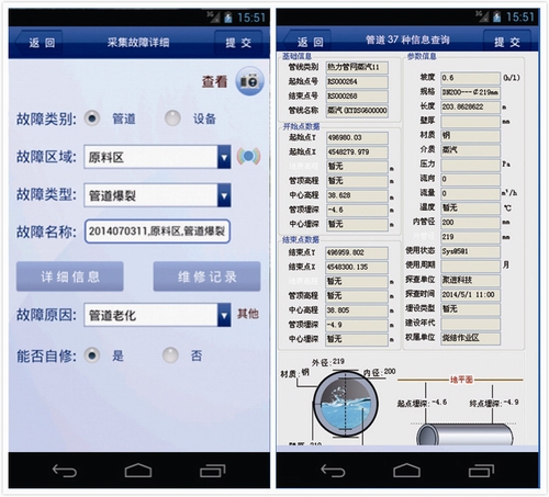 ■ 手持端PDA功能主要是對管道的日常維修進(jìn)行管控,為管道的排查上報(bào)故障等工作提供方便。