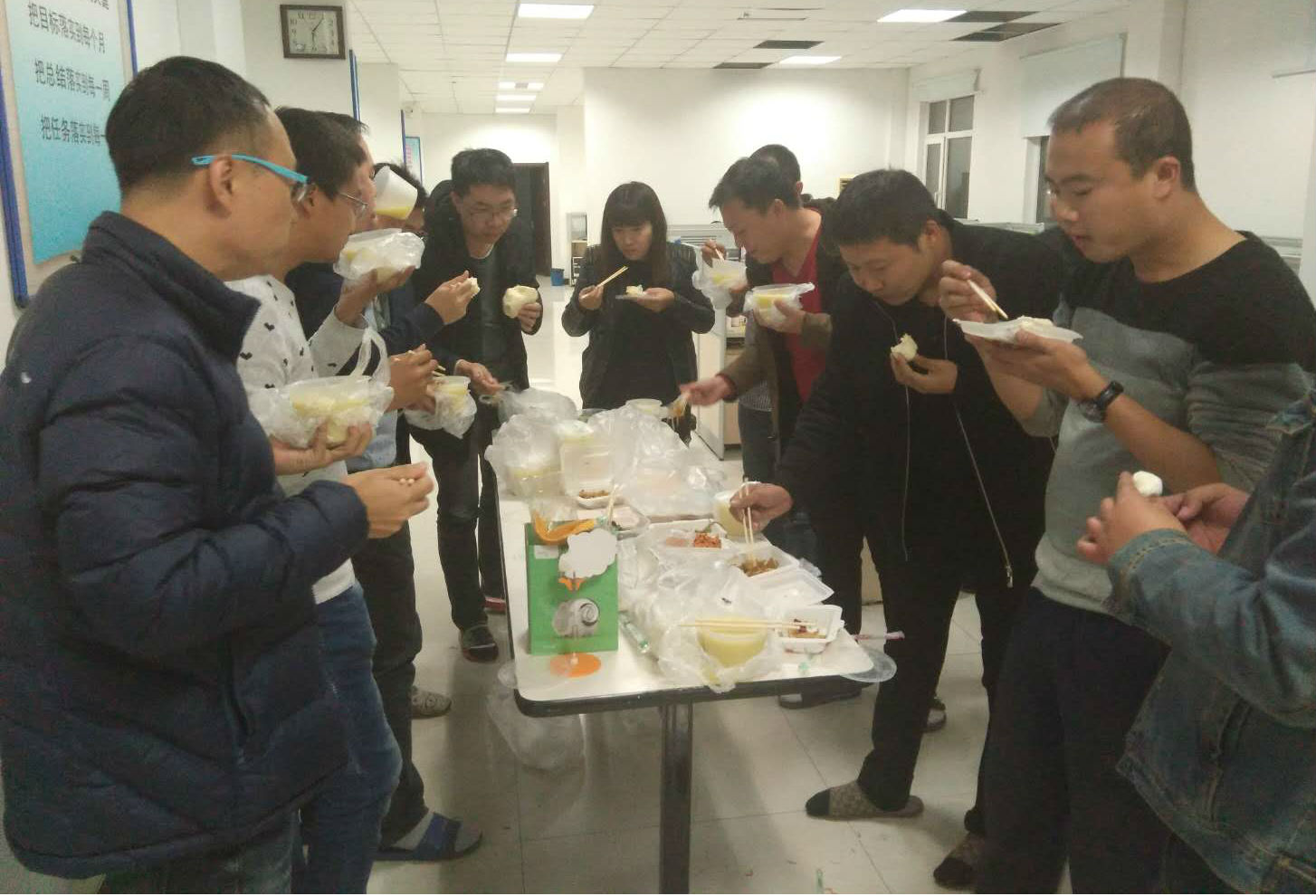 為了抓緊時(shí)間趕進(jìn)度,大家顧不得吃一頓像樣的晚餐。